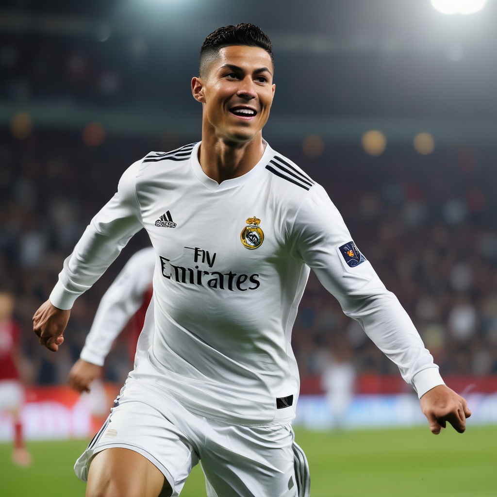 A dynamic action shot of Cristiano Ronaldo during a football matchA portrait of Georgina Rodríguez, Cristiano Ronaldo's girlfriend